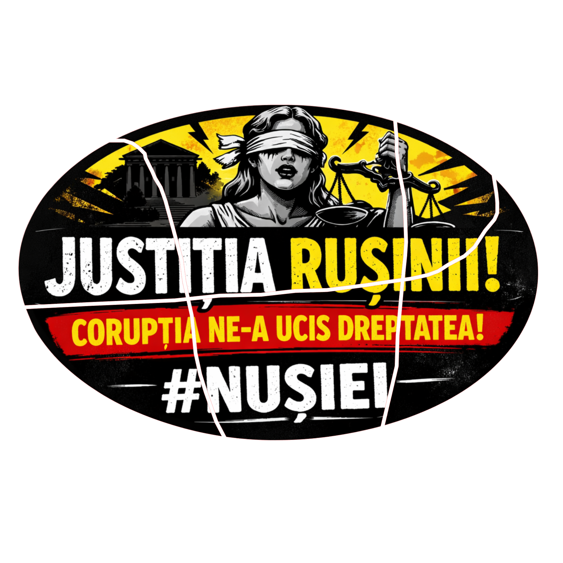 Exprimă-ți opinia și susține schimbarea cu acest sticker de protest civic dedicat justiției din România. Mesaj simplu, direct, ușor de recunoscut – creat pentru cei care nu mai vor să tacă.