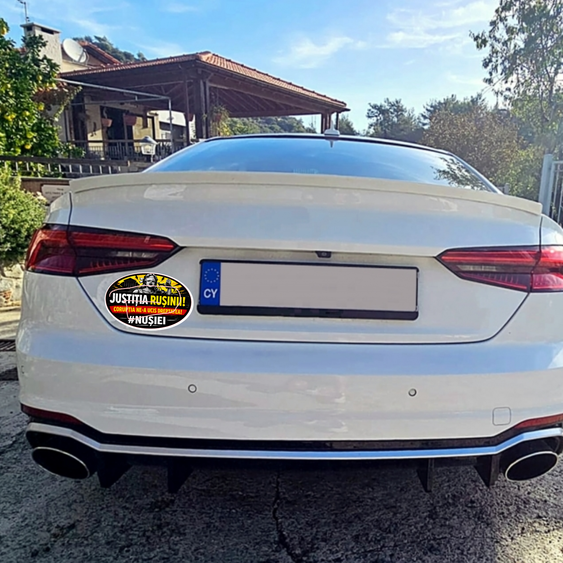 Sticker auto protest JUSTITIA RUSINII – mesaj civic Romania –
